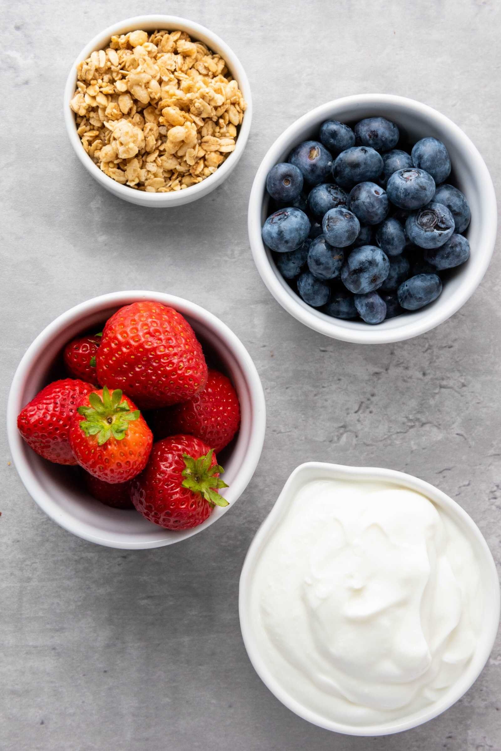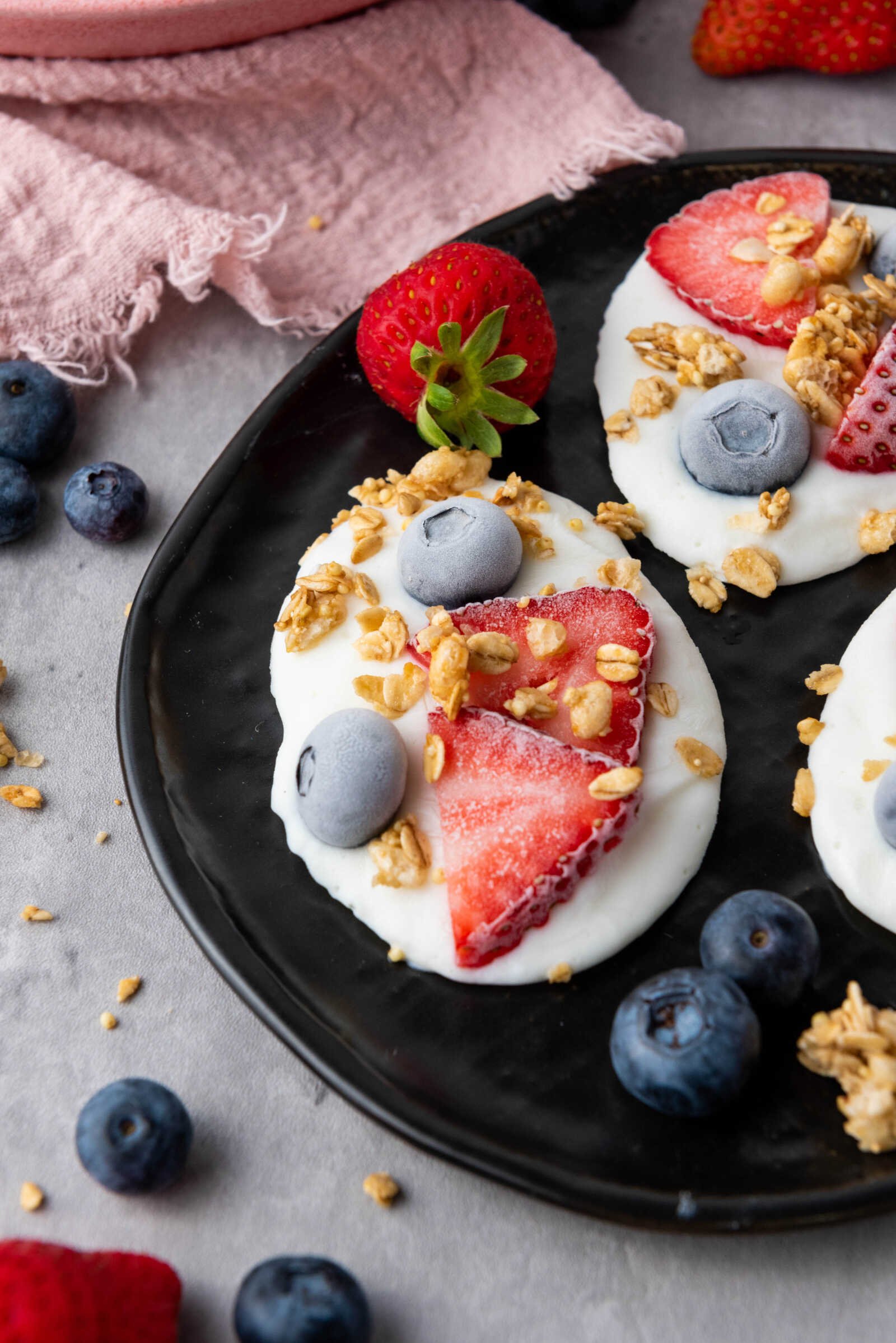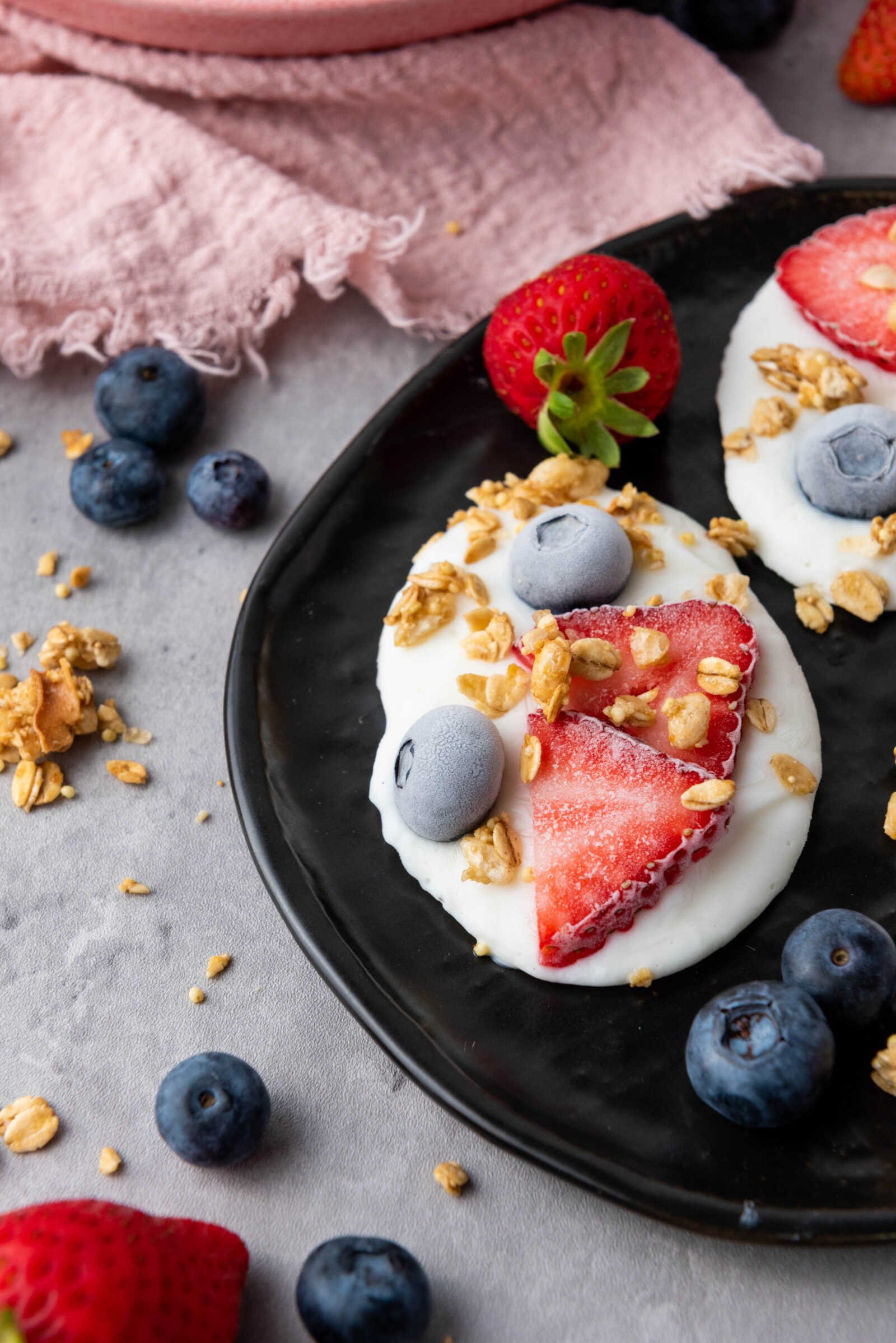 Thick and creamy yogurt works best for structure and protein. - 1/2 cup blueberries (fresh or frozen)