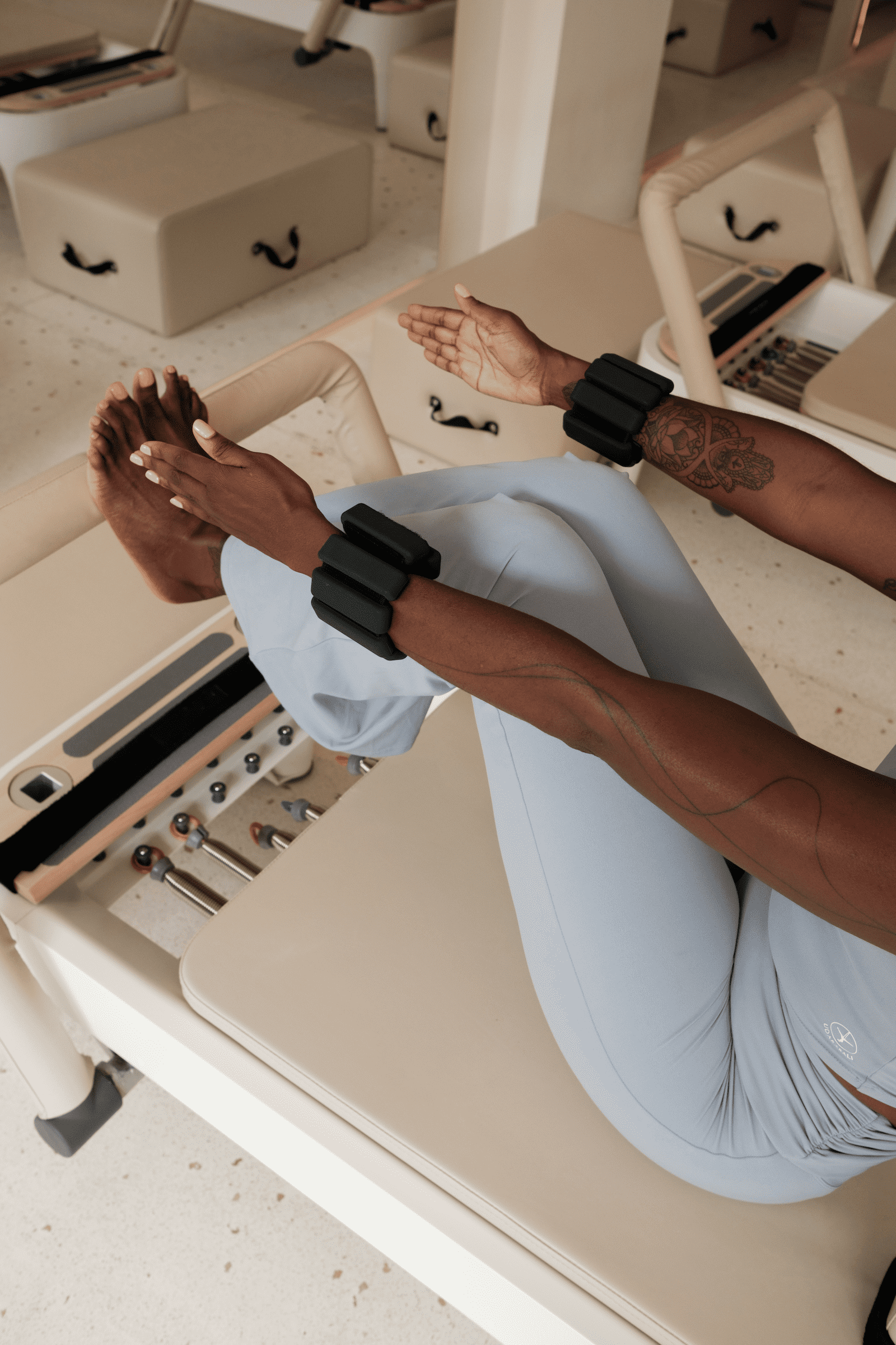 Instead of letting gravity or momentum do the work, Pilates encourages you to actively control both the lift and the lowering of a movement.